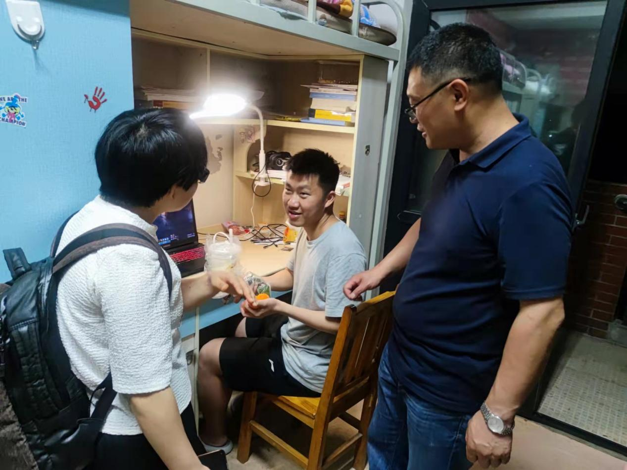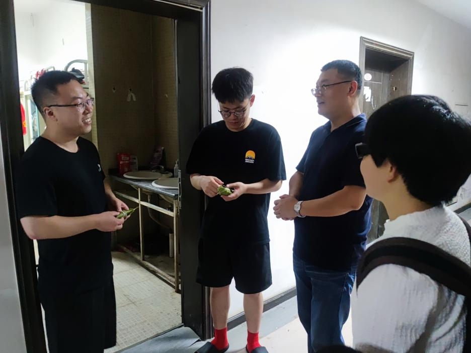晚上,詹伟带队走访慰问同学们,为他们送去学院的关怀与煮好的粽子,并与同学们进行了亲切交谈,了解同学们的生活和学习情况,并致以节日的问候和美好的祝愿,并嘱咐同学们在今后的生活中遇到困难及时与学院联系,学院将尽最大的努力给予帮助。同学们纷纷对学院领导的关心表示由衷的感谢。