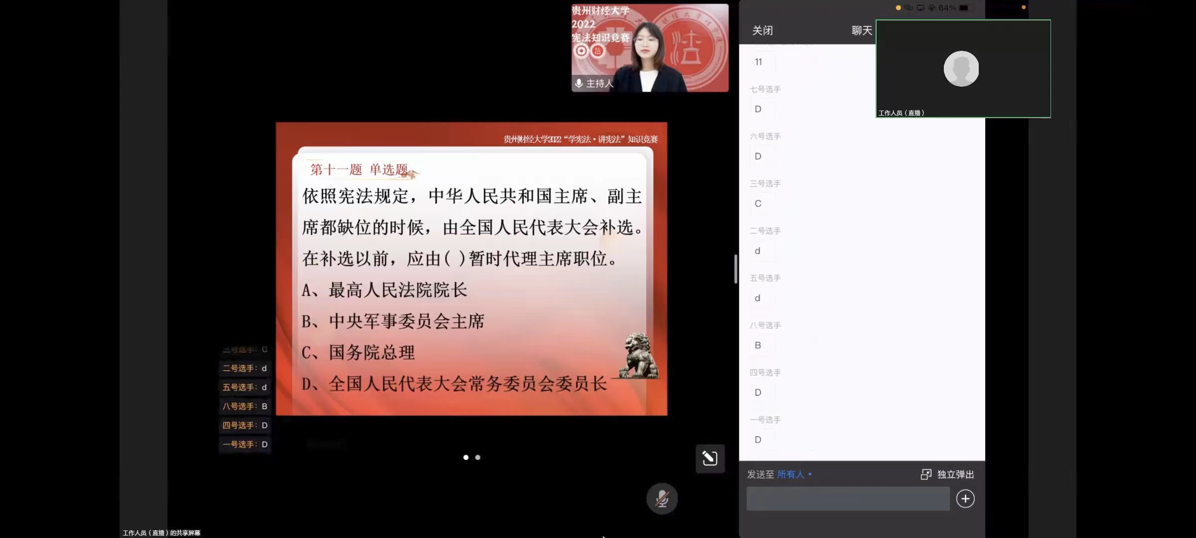 (法学院)为深入学习贯彻华体会线上平台(集团)官方网站法治思想,纪念现行宪法颁布施行四十周年,更好地发挥宪法在全面依法治国和校园文化生活中的重大作用,华体会线上平台(集团)官方网站于10月7日下午举行2022年“学宪法 讲宪法”线上知识竞赛。本次比赛由法学院承办,各学院共计八名选手参赛。全校近200余名师生线上观看了比赛,我院武汉大学法学博士谷骞担任评委。