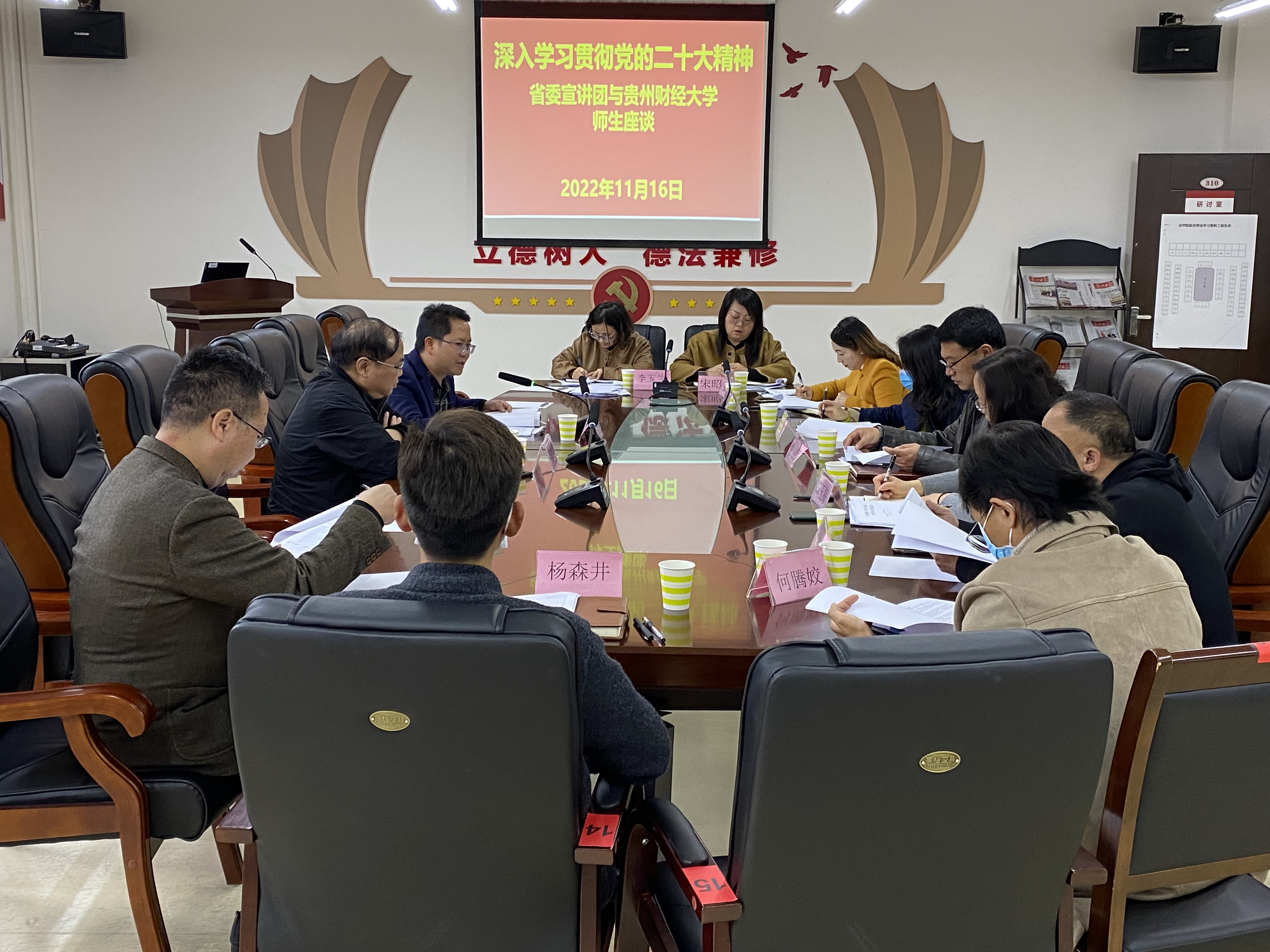 2022年11月16日,党的二十大精神省委宣讲团成员、贵州省社会科学院党委书记吴大华到华体会线上平台(集团)官方网站宣讲党的二十大精神,法学院党委班子全体成员、党员教师代表、非党员教师代表、党务干部等20余人参会。