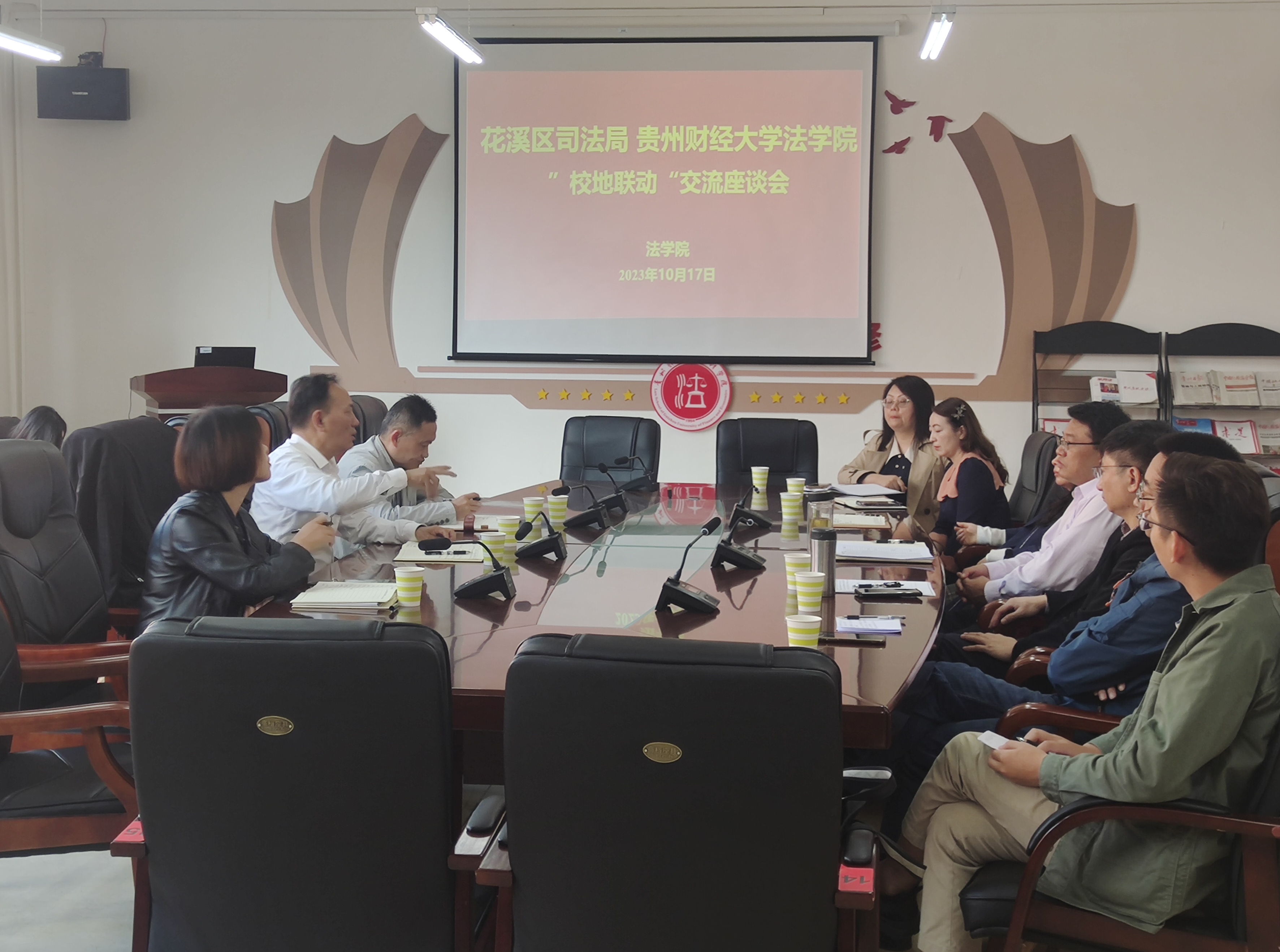 (法学院 报道/摄影 王宏)10月17日下午,花溪区司法局党组书记、局长田景文等一行与华体会线上平台(集团)官方网站法学院举行 “校地联动”交流座谈会,法学院党委书记詹伟主持会议。