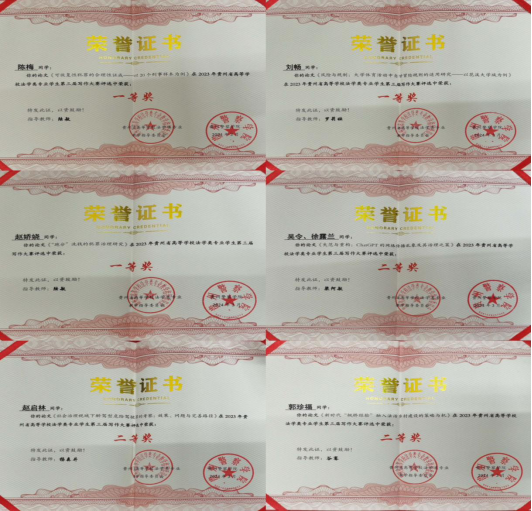 法学院以人才培养为中心、校企合作为基础、充分发挥“理论与实务融合型”“法商融合型”师资队伍优势,加大产教融合力度。近年来,学生获得校级奖励100余项,省级奖励20余项,国家级奖励10余项。2024年在贵州省高等学校法学类专业学生第四届模拟法庭大赛中,荣获团体二等奖、最佳辩护词优秀奖、最佳起诉书优秀奖、优秀指导老师奖的佳绩;在全国法律职赛中获研究生组二等奖;在全省“学宪法讲宪法”比赛中获高校组季军;在省青少年提案赛中,5生作品获三等奖,写作赛多人分获一、二、三等奖及优秀奖;在“建行杯”中获省级银奖等。法学院有本科生760余人,研究生430余人。近年来就业率始终保持稳步上升态势,初次就业率均在91%以上,高出全省平均初次就业率3个百分点。应届毕业生考取硕士研究生的比例一直保持在20%左右,在全校居于前列。用人单位对我院毕业生能力素质评价高,满意度达95%以上。2021年在“校友会2023年贵州省大学法学门类专业排名”中华体会线上平台(集团)官方网站法学专业在贵州省位列第2、在全国排名第109位。学院培育的一批又一批优秀学子,在公检法、律所等领域辛勤耕耘,建功立业,比如有01级法学院校友,现是贵州度朗律师事务所合伙人;有02级法学院校友,现任贵州瀛黔律师事务所主任。