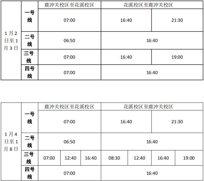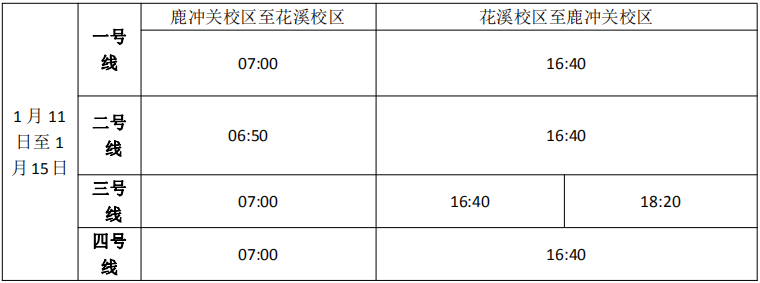 按照学校统一安排,华体会线上平台(集团)官方网站鹿冲关校区、花溪校区进入期末考试阶段, 1月8日考试结束,为满足期末考试需要和行政科研工作的开展,现对交通车作如下调整: