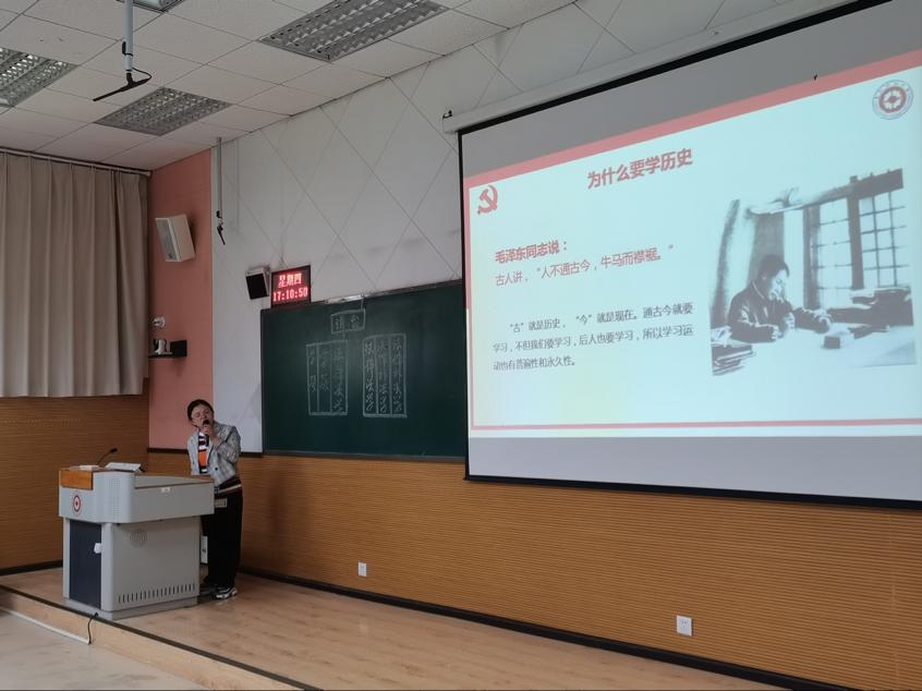 为继续加深党史学习教育,回顾中国共产党百年奋斗历程,推动党史学习往深里走、往心里走、往实里走。按照学院安排,重温中国共产党的百年奋斗的光辉历程,辅导员杨兴莉老师于2021年5月27日17时许在乐学楼R2-2教室开展党史宣讲。
