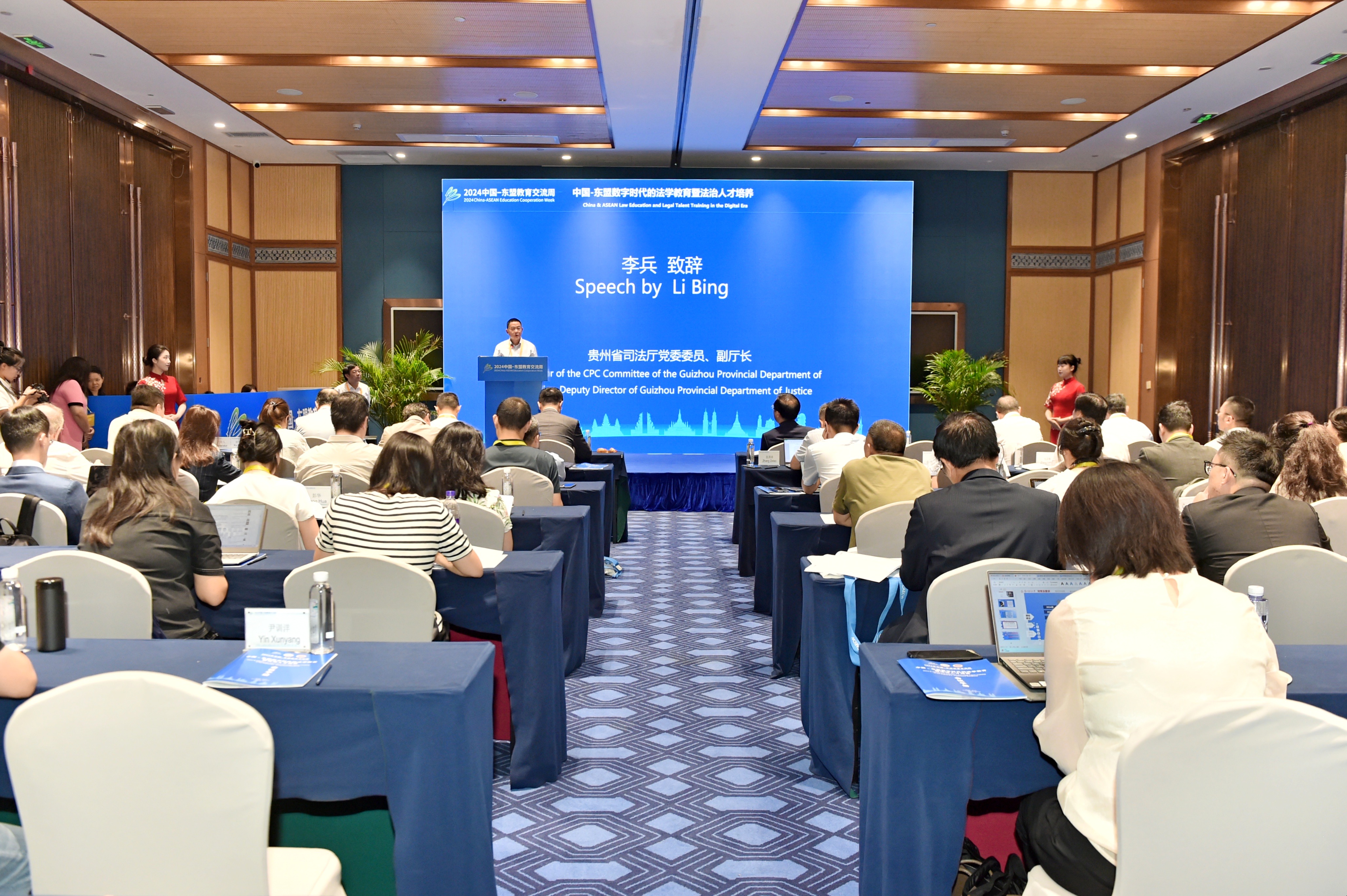 贵州省司法厅党委委员、副厅长李兵在致辞中指出,此次论坛是加强交流与对话、全面深化法学教育法学研究等领域合作的国际平台,将汇聚中国东盟法学界研究智慧力量,共同探讨培养兼具国际视野和涉外法律知识人才的新思路新路径,推动构建更加创新包容、可持续的中国东盟法学教育和法治人才培养机制。